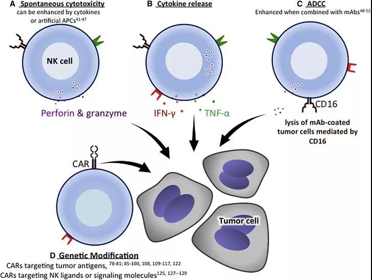 ▲ NK細(xì)胞介導(dǎo)的腫瘤細(xì)胞毒性機(jī)制